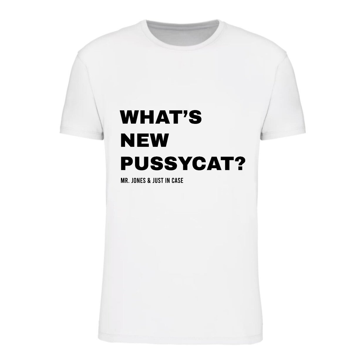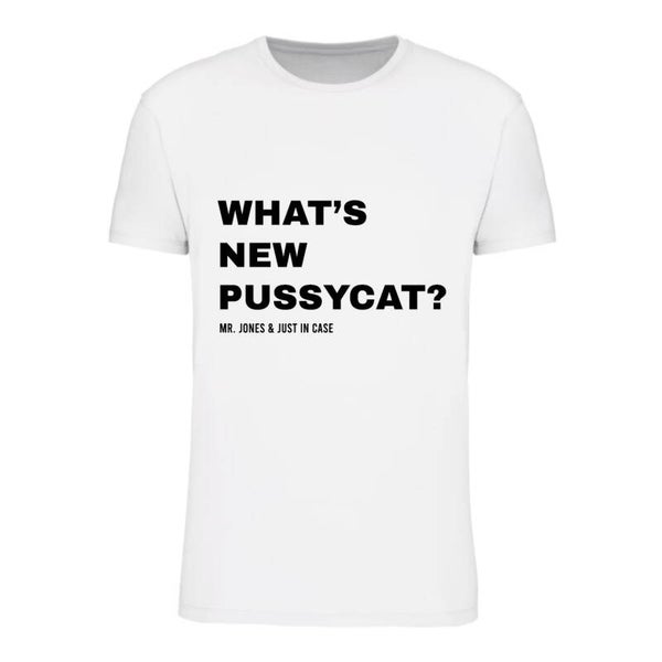 Wit T-shirt, unisex. What's New Pussycat?